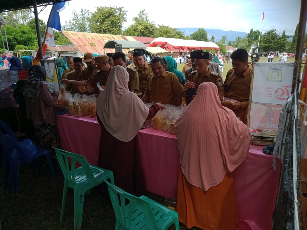 Produk olahan makanan berbahan baku janeng (ubi hutan/gadung) buatan masyarakat Gampong Riting hadir secara spesial menyemarakkan perayaan HUT RI di lapangan upacara Kecamatan Indrapuri, 17/08/2024. Camat Indrapuri, Irda Junaidi,…
