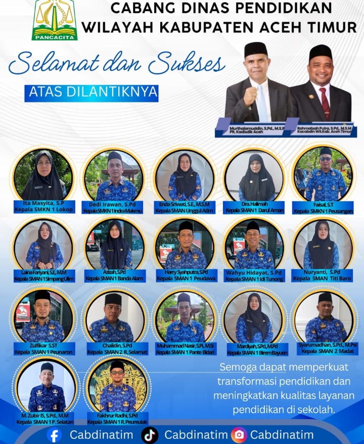 Gubernur Aceh Lantik Kepala SMA dan SMK Kabupaten Aceh Timur, Berikut Namanya